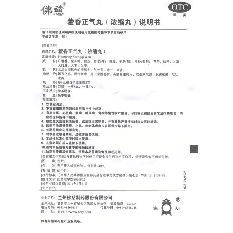 - 商品名称:佛慈 藿香正气丸 240丸/瓶