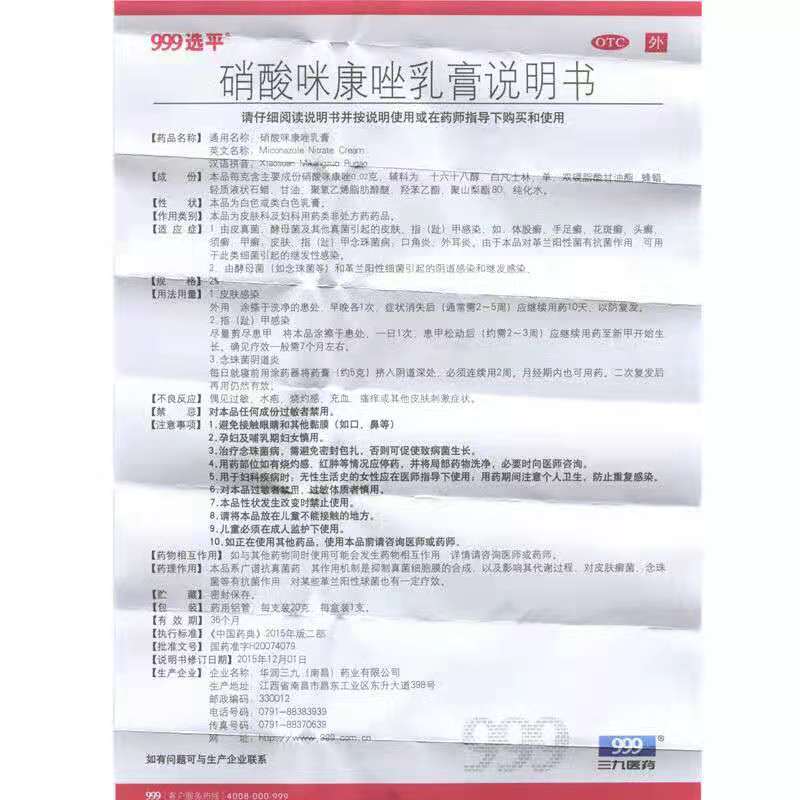 - 商品名称:999选平 硝酸咪康唑乳膏 20g