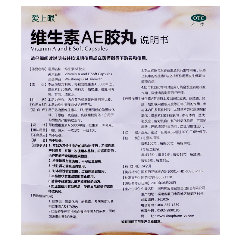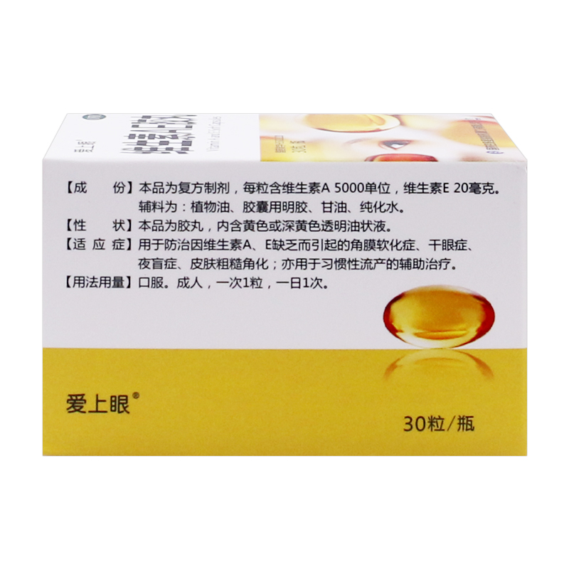 - 适应症/功能主治:用于防治因维生素A、E缺乏而引起的角膜软化症、干眼症、夜盲症、皮肤粗糙角化;亦用于习惯性流产的辅助治疗