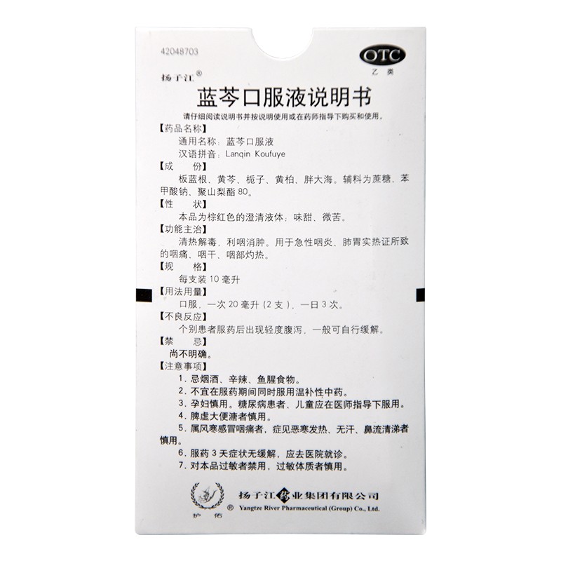 - 商品名称:扬子江 蓝芩口服液 12支/盒