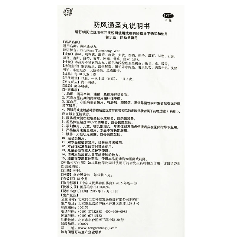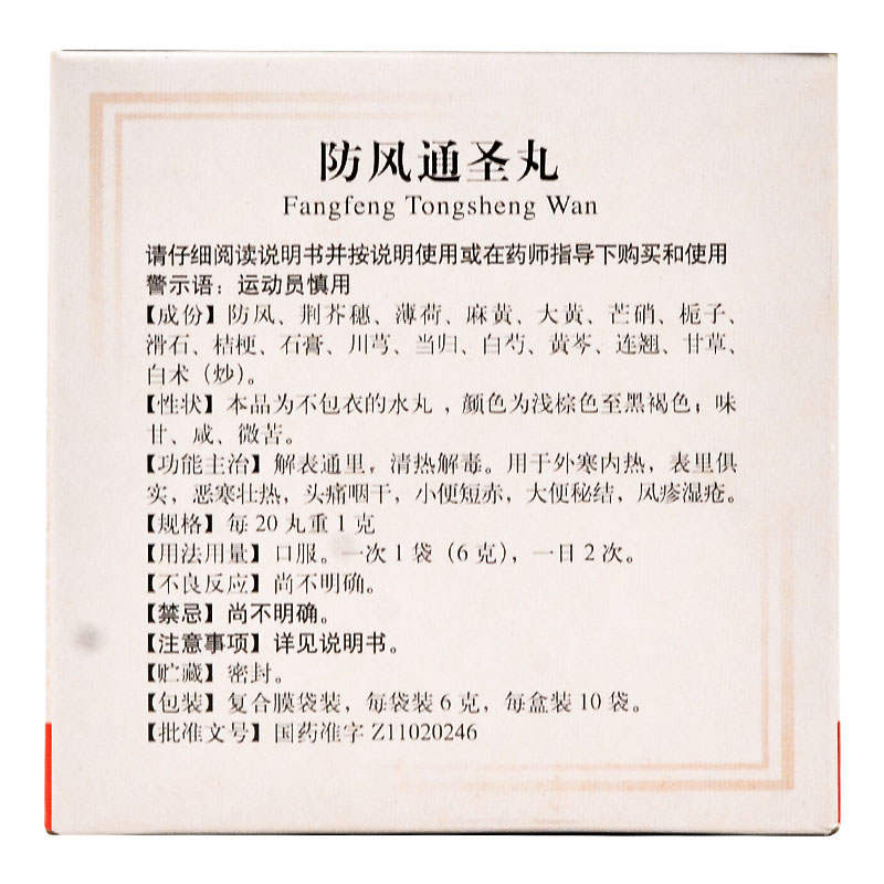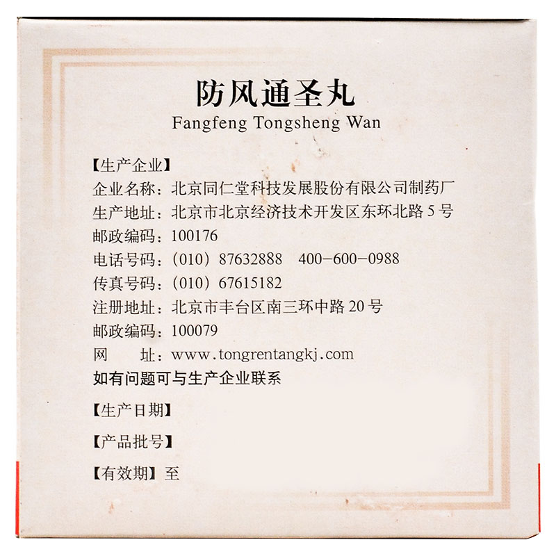 - 商品名称:同仁堂 防风通圣丸 6g*10袋/盒