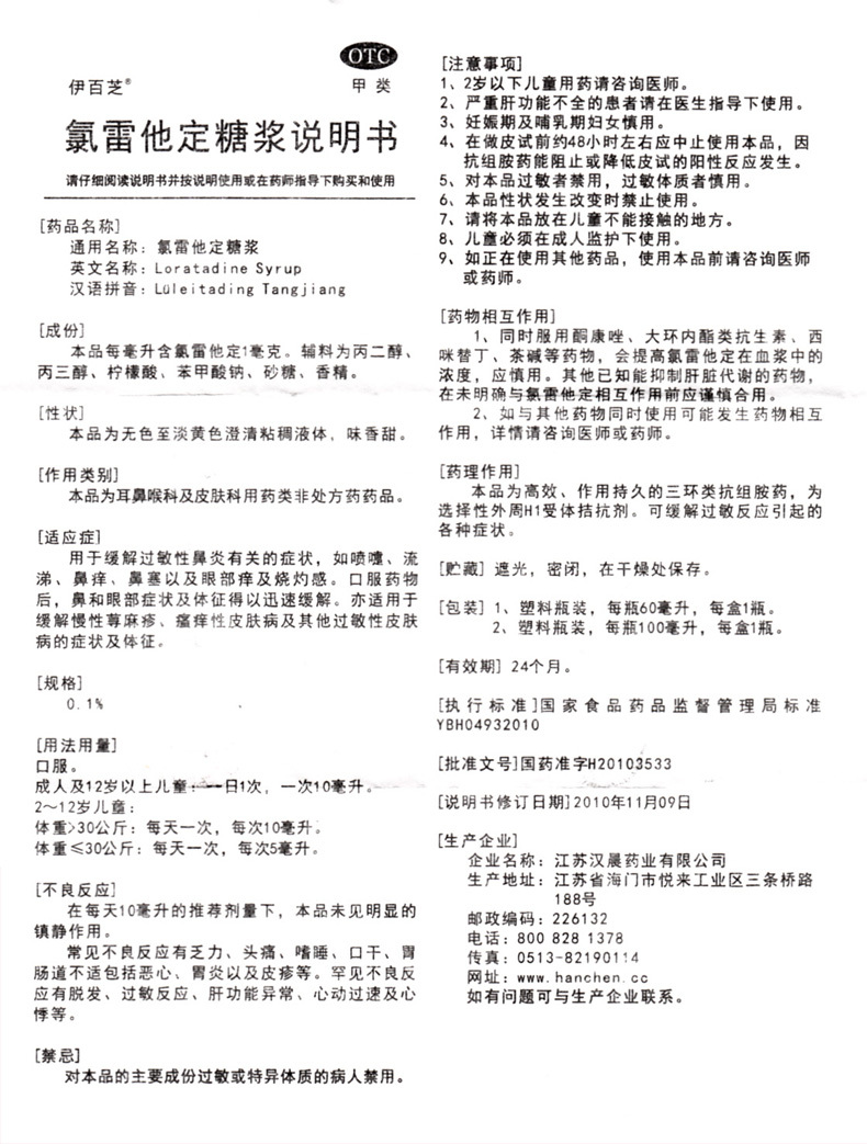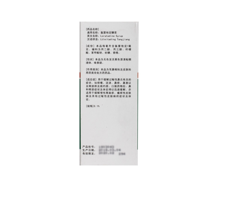 - 商品名称:伊百芝 氯雷他定糖浆 100ml/瓶