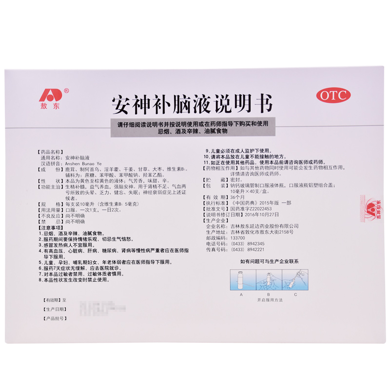 - 商品名称:敖东 安神补脑液 10ml*40支/盒