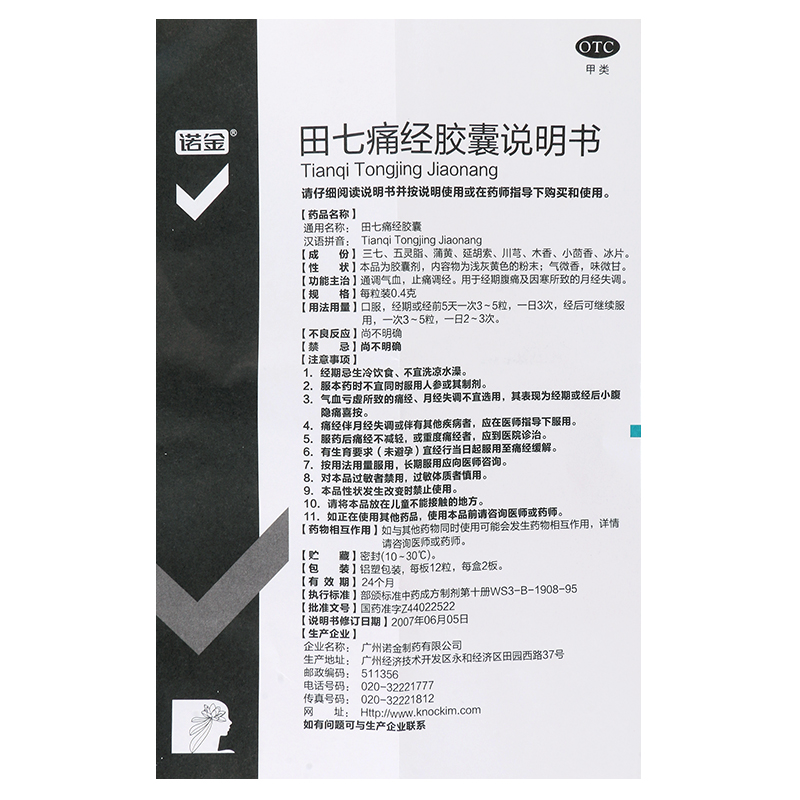 - 商品名称:诺金 田七痛经胶囊 0.4g*24粒