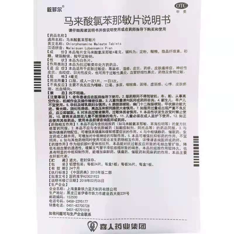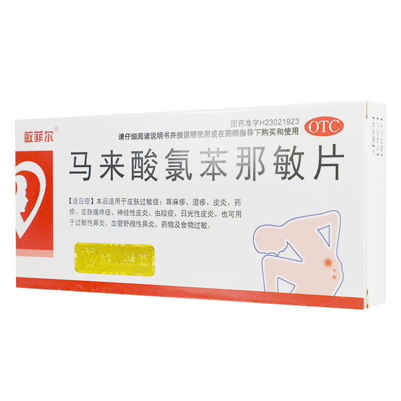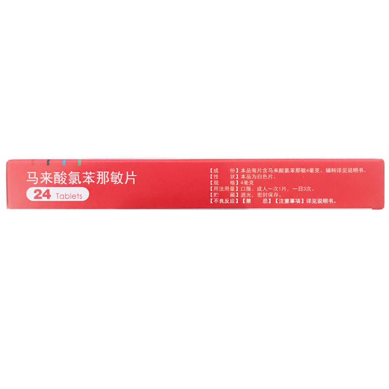 - 商品名称:敏菲尔 马来酸氯苯那敏片 4g*24片/盒