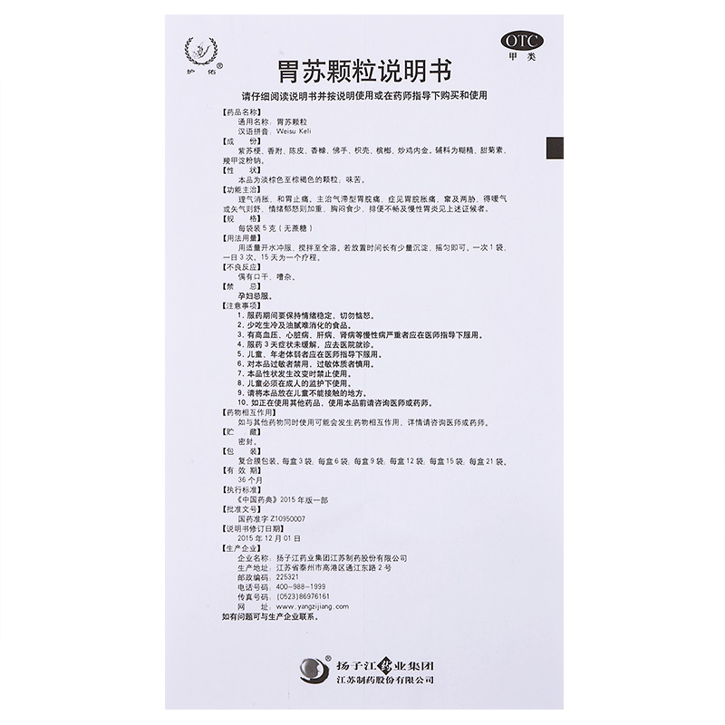 - 商品名称:卫苏 胃苏颗粒 5g*9袋/盒