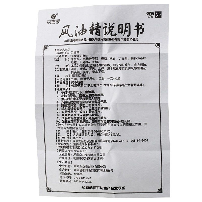 • 商品名称:众益泰 风油精 3ml/瓶