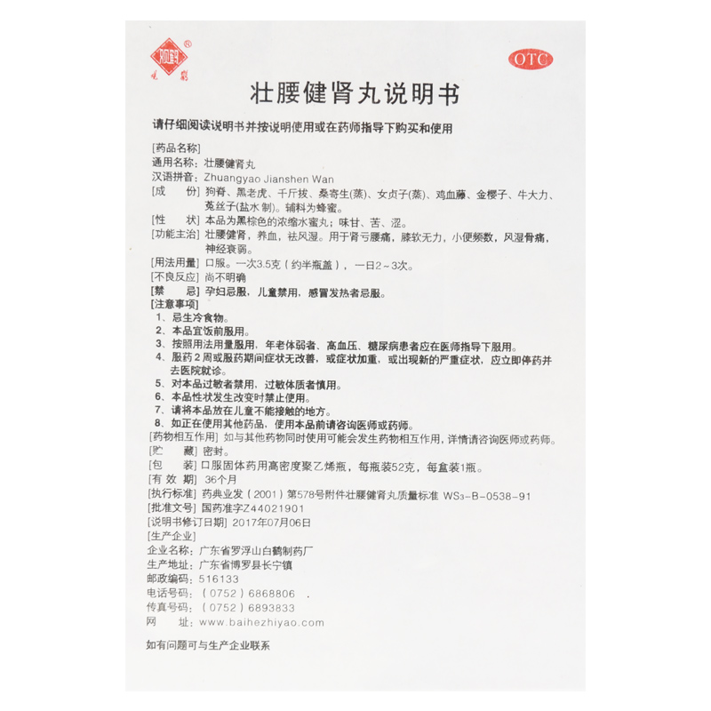 - 商品名称:观鹤 壮腰健肾丸 52g