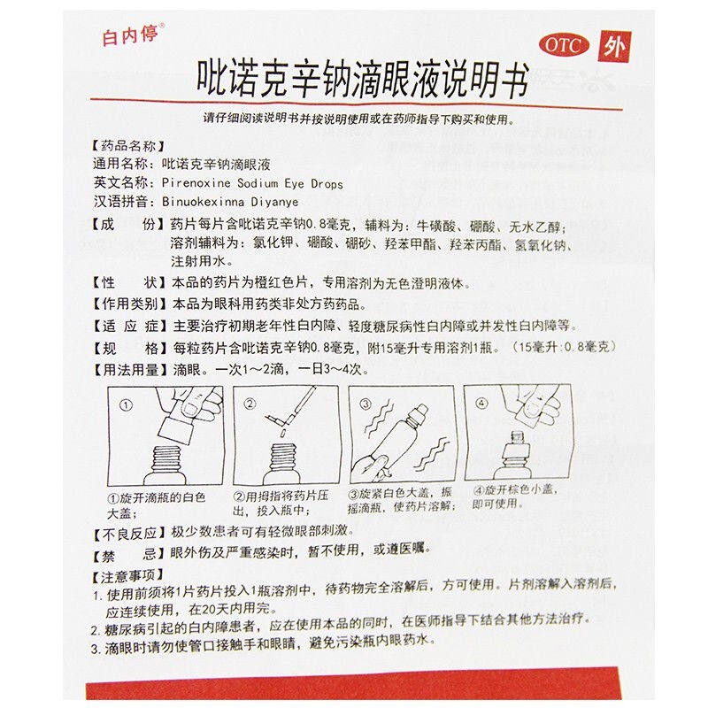 - 商品名称:白内停 吡诺克辛钠滴眼液 15ml/瓶