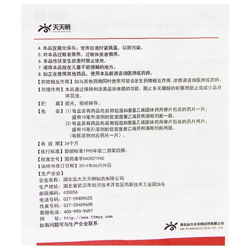 - 适应症/功能主治:主要治疗初期老年性白内障轻度糖尿病白内障或并发性白内障等。