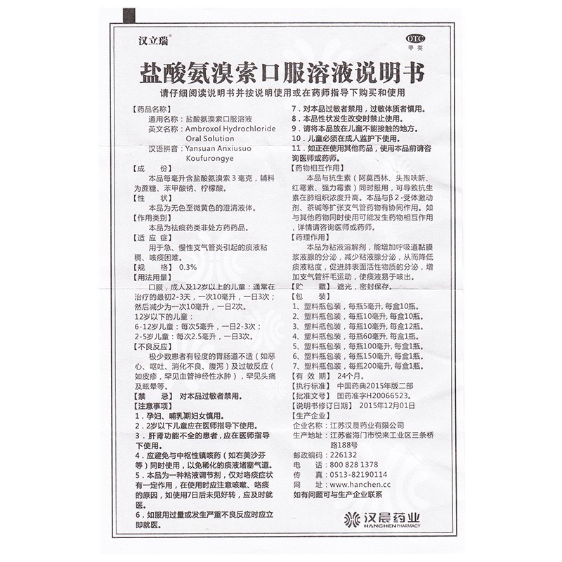 - 商品名称:汉立瑞 盐酸氨溴索口服溶液 200ml