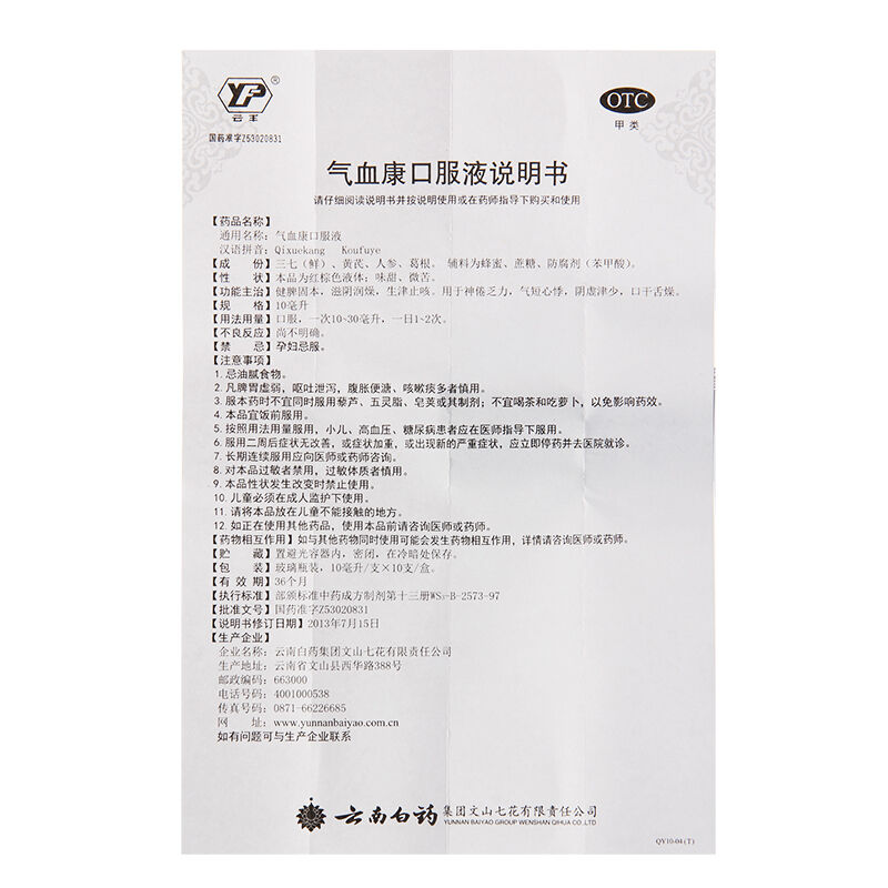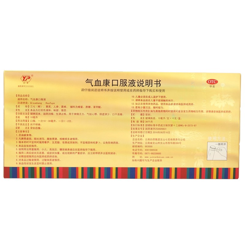 - 商品名称:云丰 气血康口服液 10ml*10支/盒