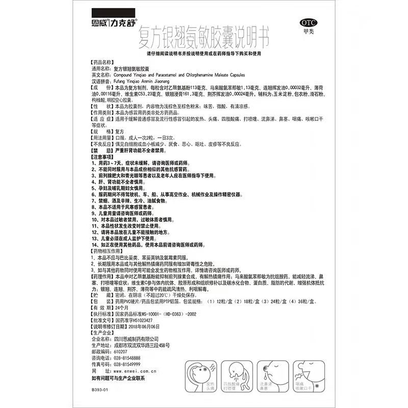 - 商品名称:力克舒 恩威 复方银翘氨敏胶囊 24粒/盒