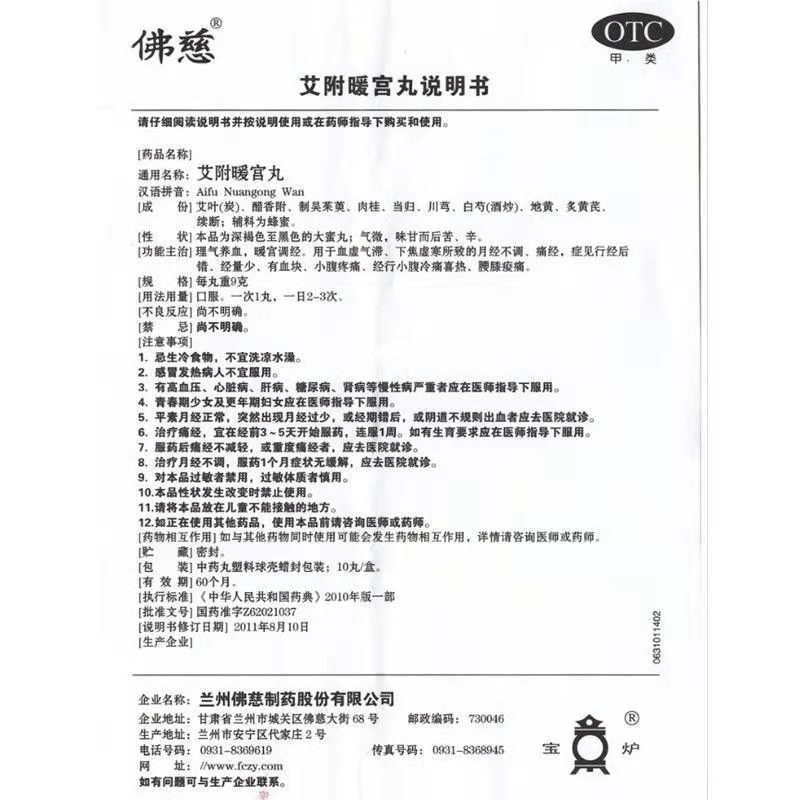 - 商品名称:佛慈 艾附暖宫丸 9g*10丸/盒