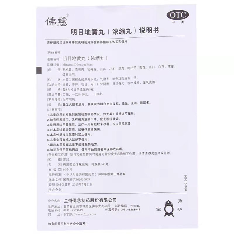 - 商品名称:佛慈 明目地黄丸 240丸/瓶
