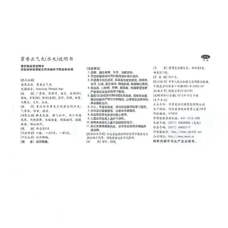- 商品名称:仲景 藿香正气丸 6g*10袋/盒
