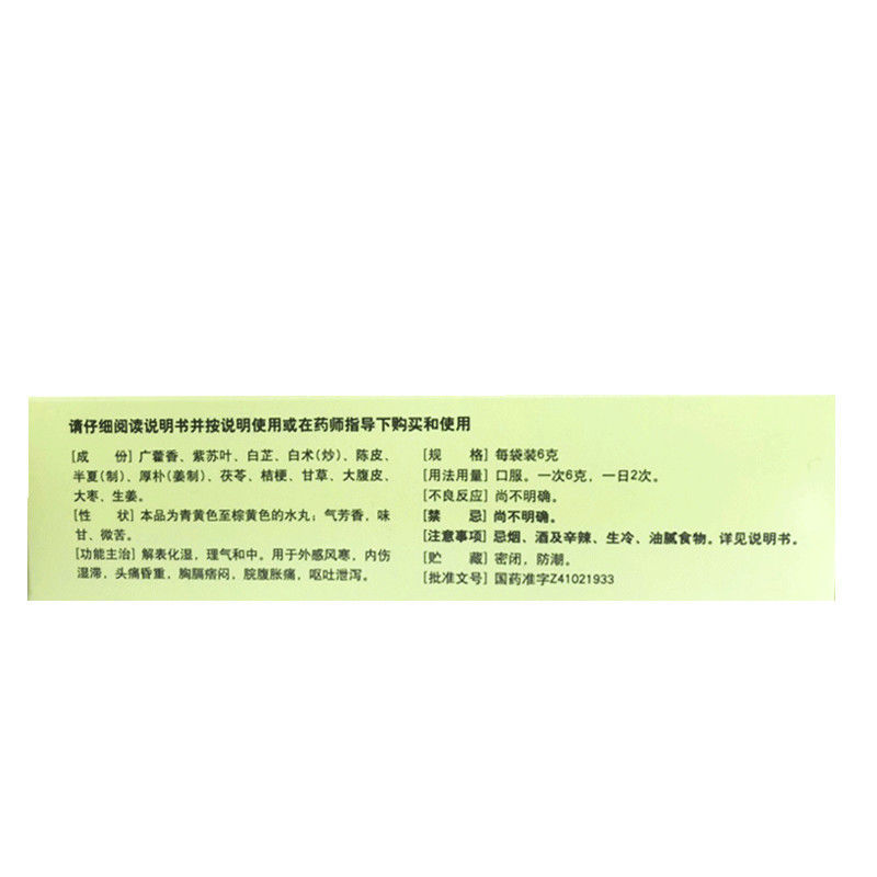 - 适应症/功能主治:解表化湿,理气和中。用于外感风寒,内伤湿滞,头痛昏重,胸膈痞闷,脘腹胀痛,呕吐泄泻。
