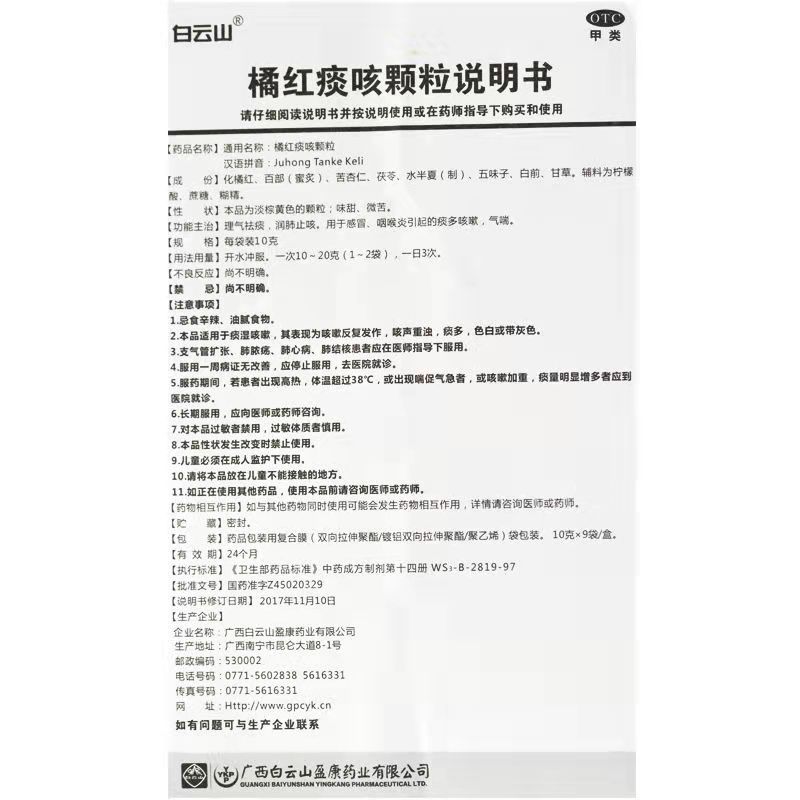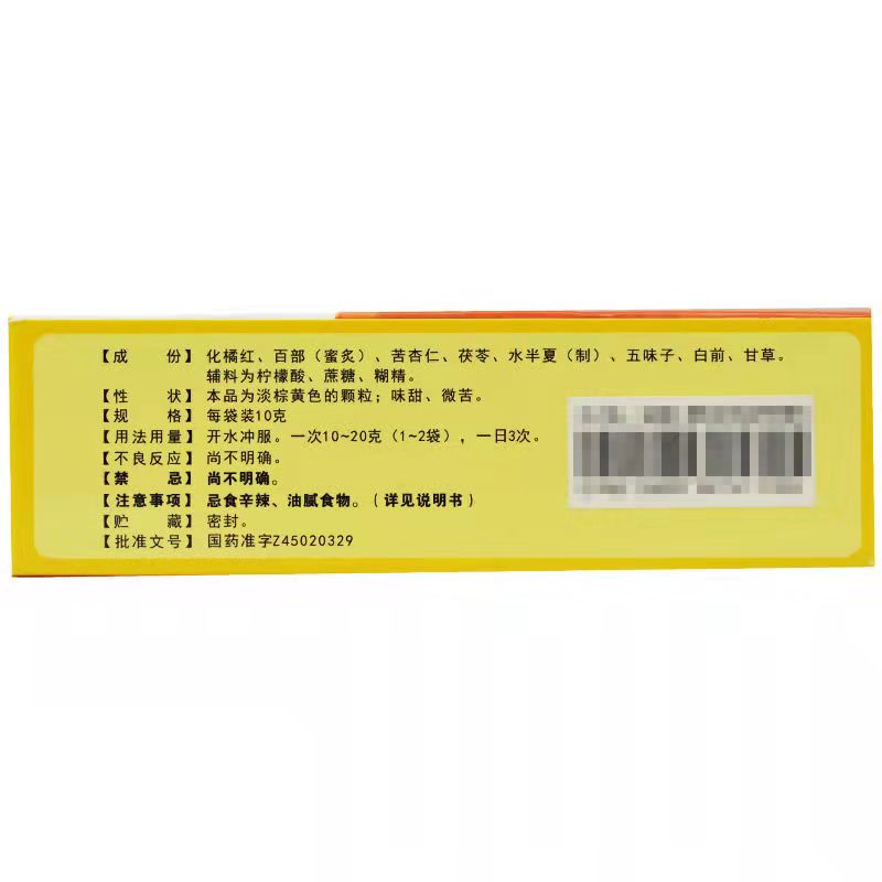 - 商品名称:白云山 橘红痰咳颗粒 10g*9袋/盒