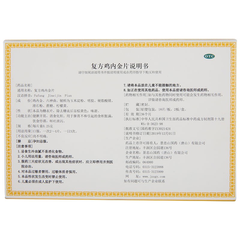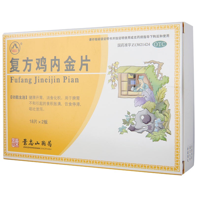 - 商品名称:景忠山 复方鸡内金片 0.25g*18片*2板/盒