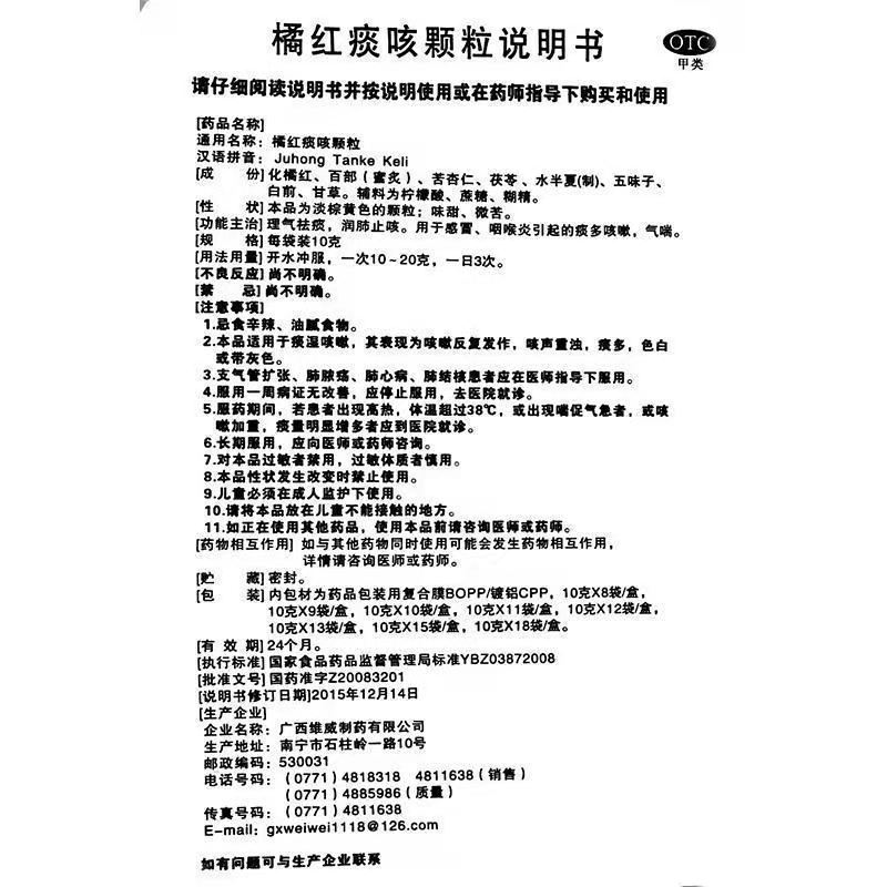 - 商品名称:维威 橘红痰咳颗粒 10g*12袋/盒
