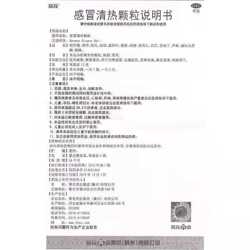 • 商品名称:葵花 感冒清热颗粒 12g*6袋/盒