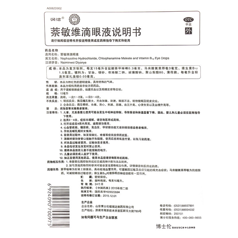 萘敏维滴眼液(红润洁)