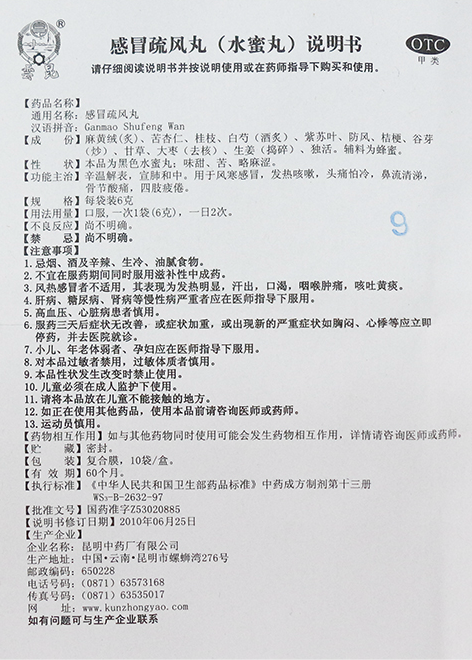 - 商品名称:感冒疏风丸 6克×10袋