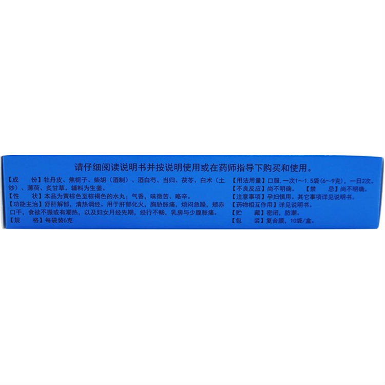 - 适应症/功能主治:舒肝解郁,清热调经。用于肝郁化火,胸胁胀痛,烦闷急躁,颊赤口干,食欲不振或有潮热,以及妇女月经先期,经行不畅,乳房与少腹胀痛。