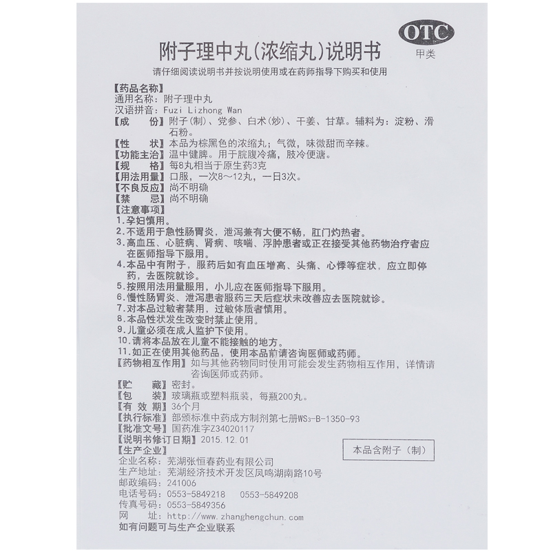 附子理中丸(浓缩丸)