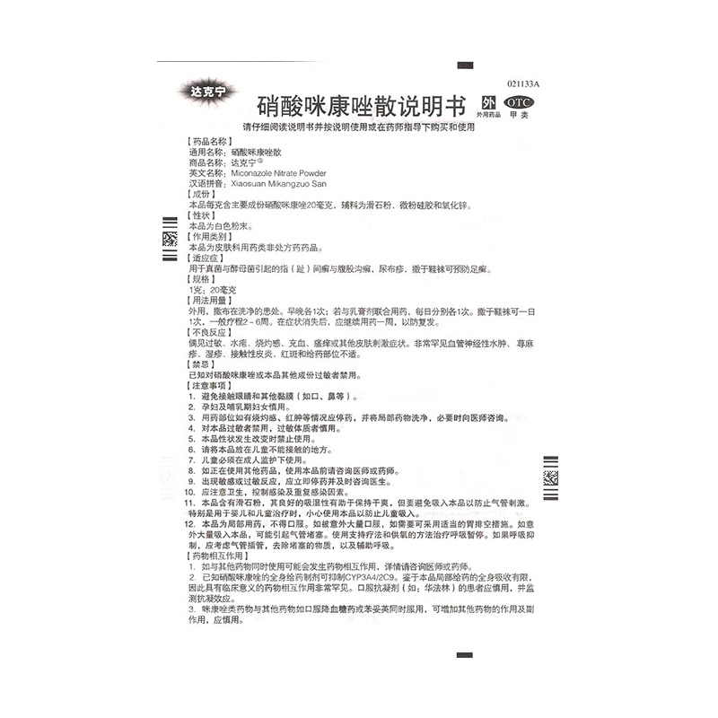 硝酸咪康唑散