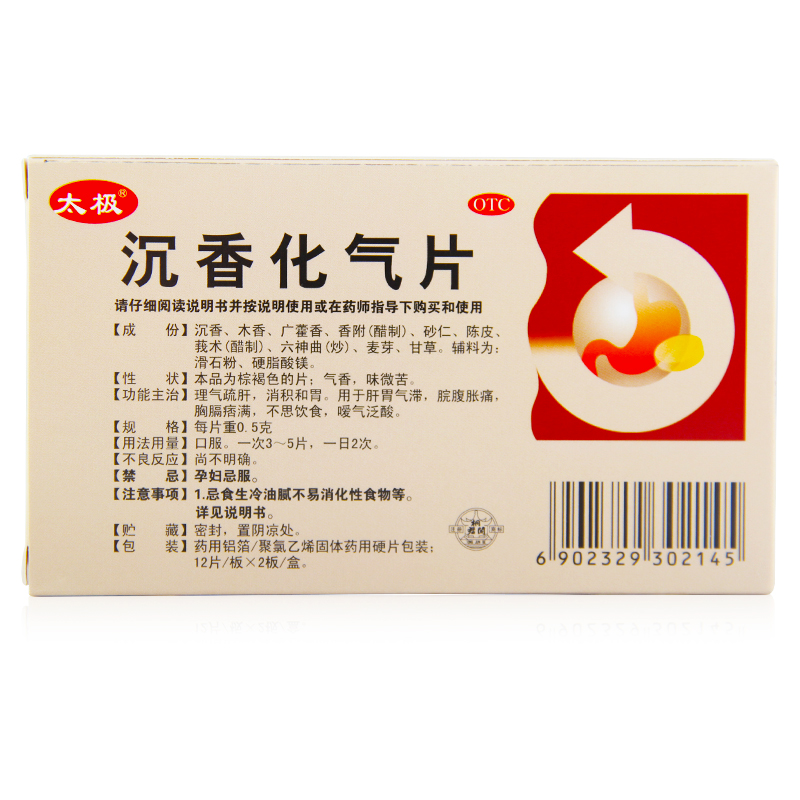 • 商品名称:太极 沉香化气片 0.5g*12片*2板/盒