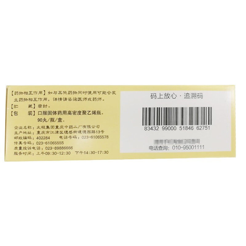 • 生产企业:太极集团重庆中药二厂有限公司(原太极集团浙江东方制药有限公司)