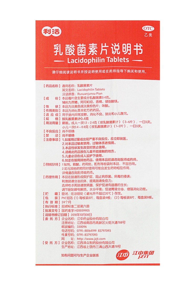 • 商品名称:江中 乳酸菌素片 64片/盒