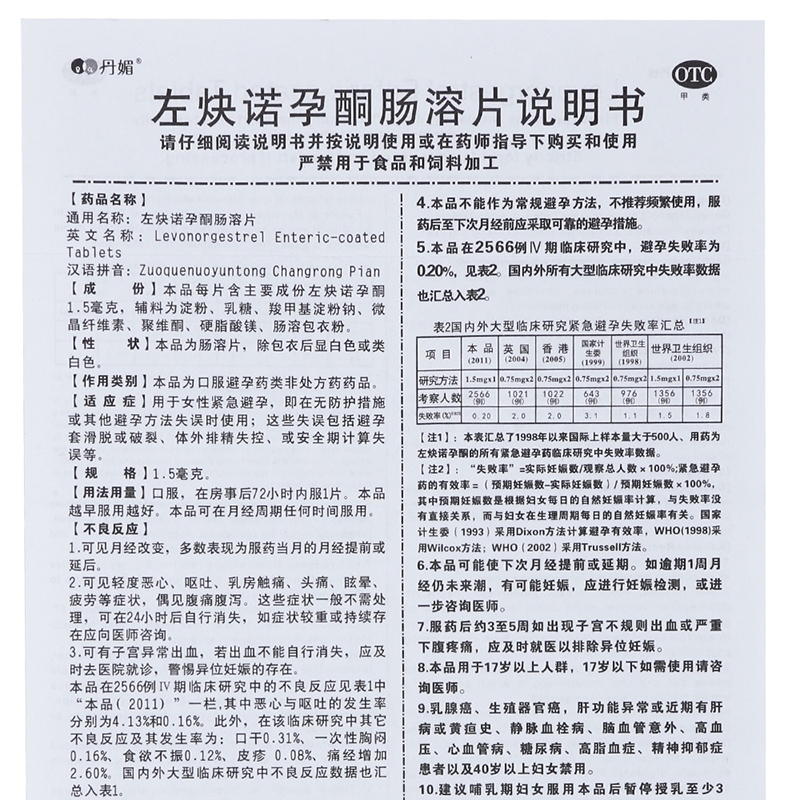 左炔诺孕酮肠溶片