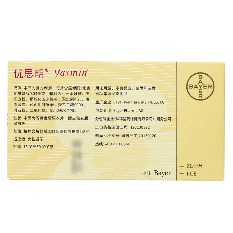 - 商品名称:优思明 屈螺酮炔雌醇片 0.03mg:3mg*21片/盒