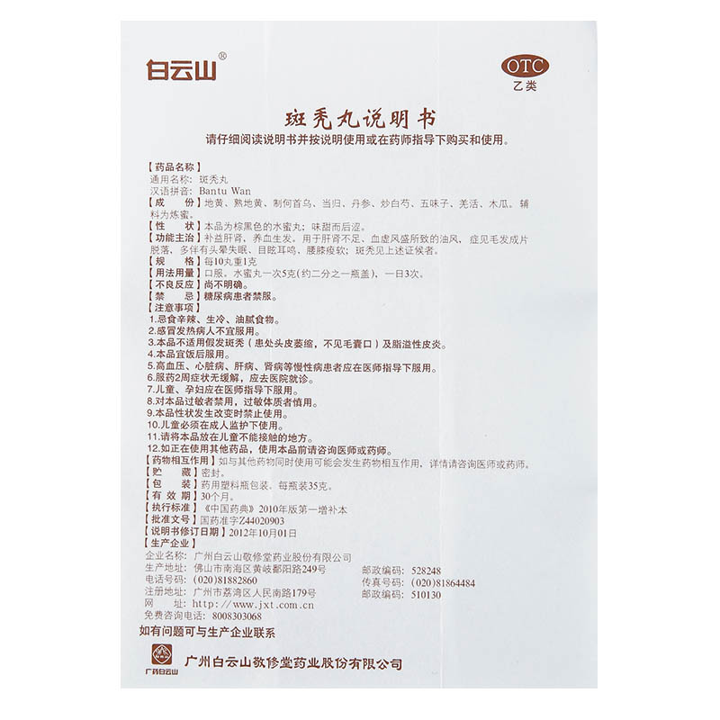 • 生产企业:广州白云山敬修堂药业股份有限公司
