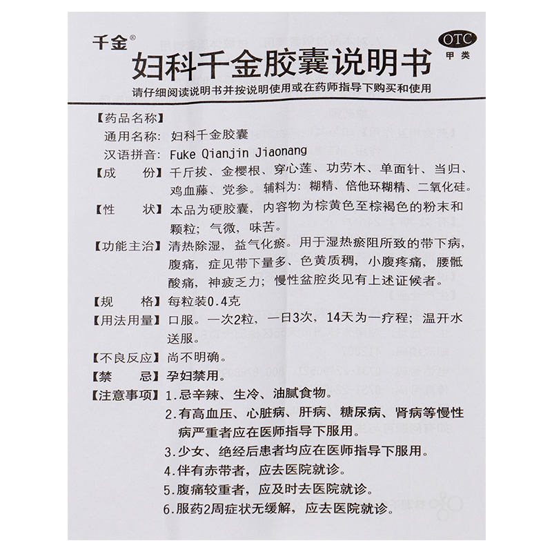 • 商品名称:千金 妇科千金胶囊 0.4g*12粒*3板/盒