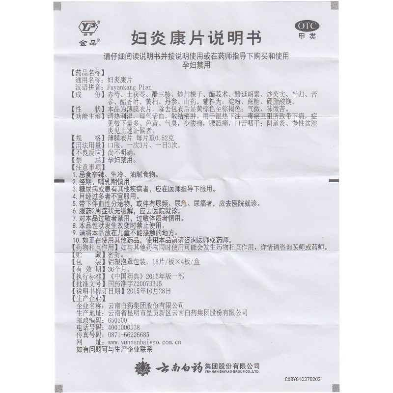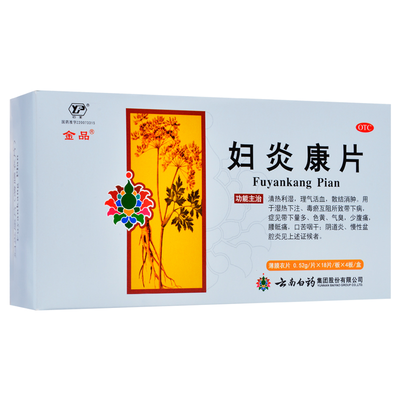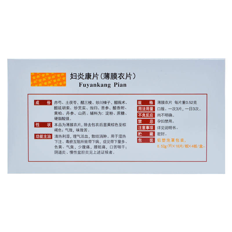 • 商品名称:金品 妇炎康片 0.52g*18片*4板/盒