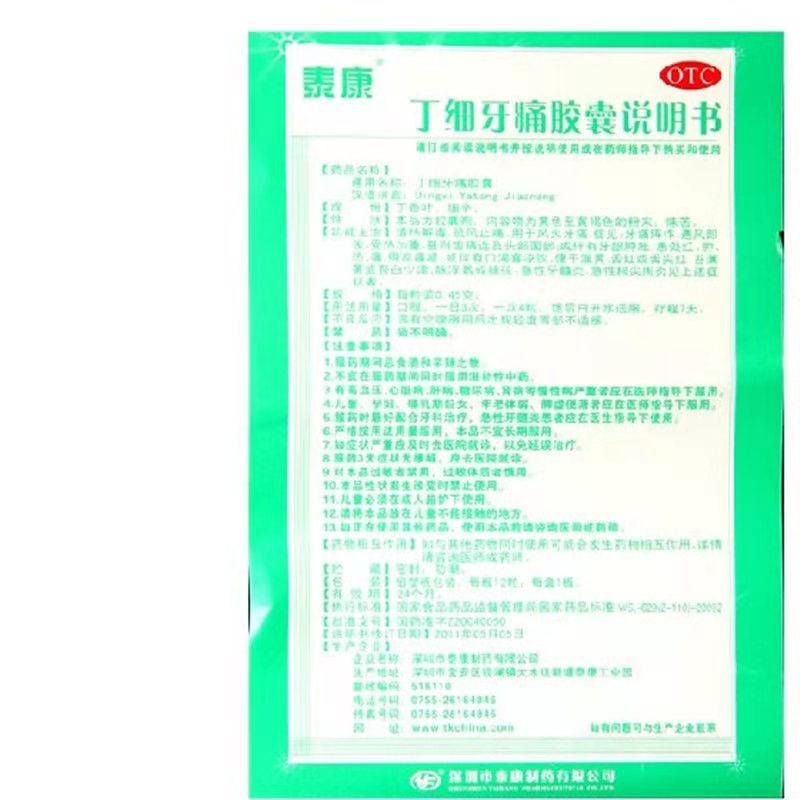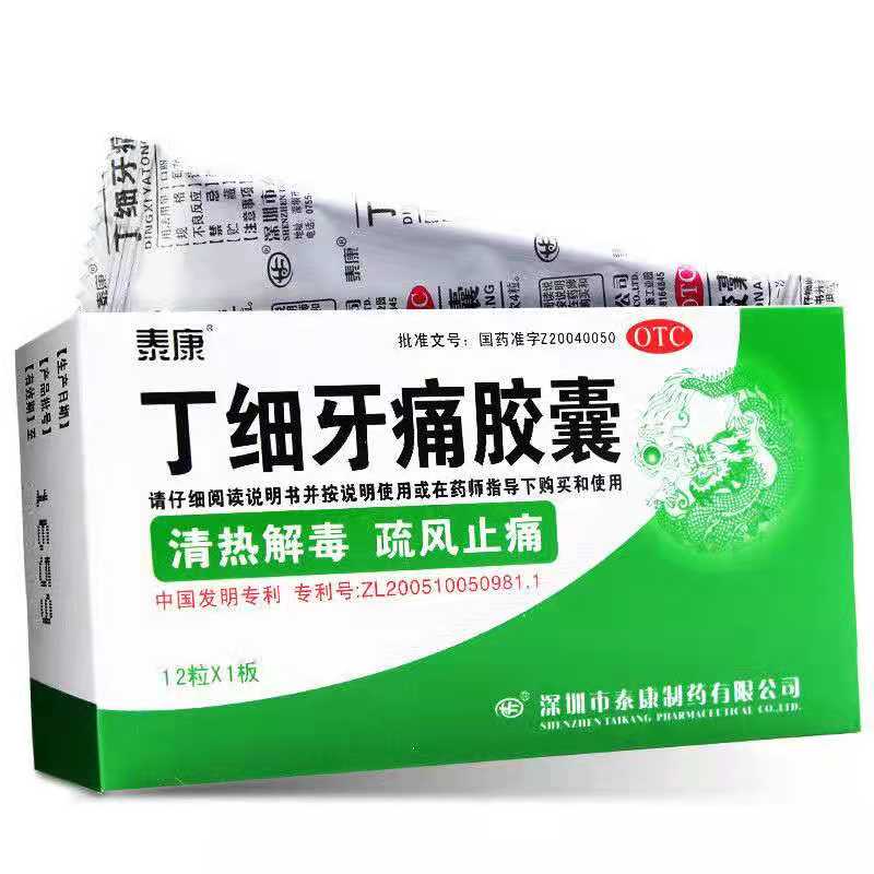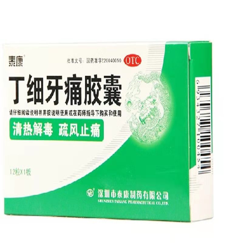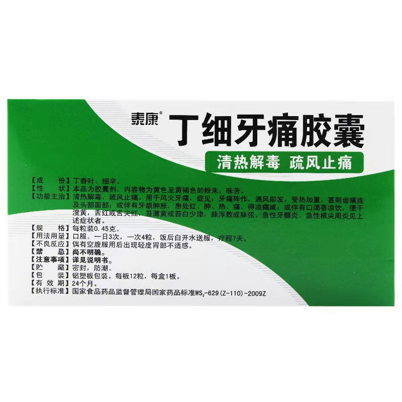 • 商品名称:泰康 丁细牙痛胶囊 0.45g*12粒/盒