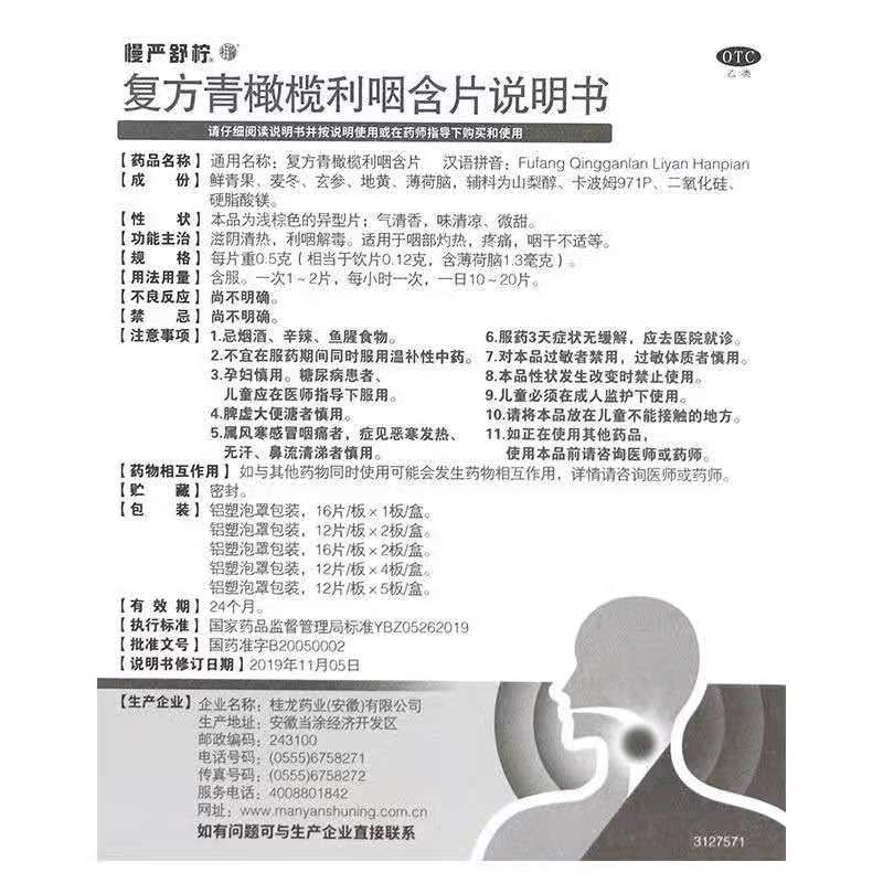• 通用名称:复方青橄榄利咽含片