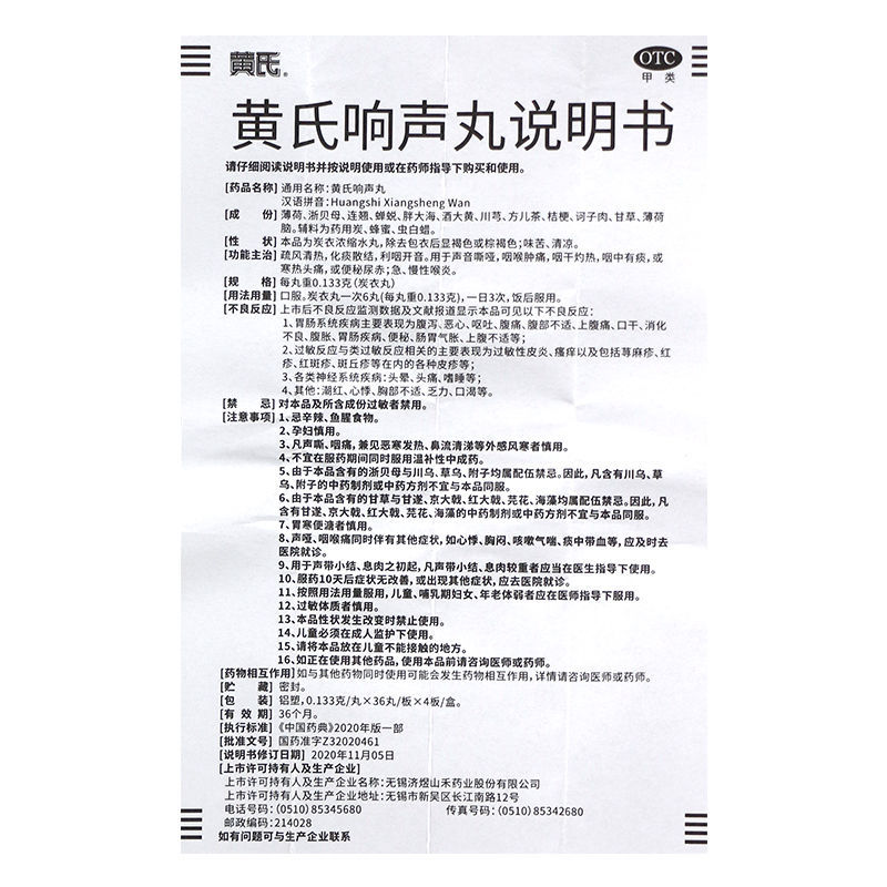 • 通用名称:黄氏响声丸