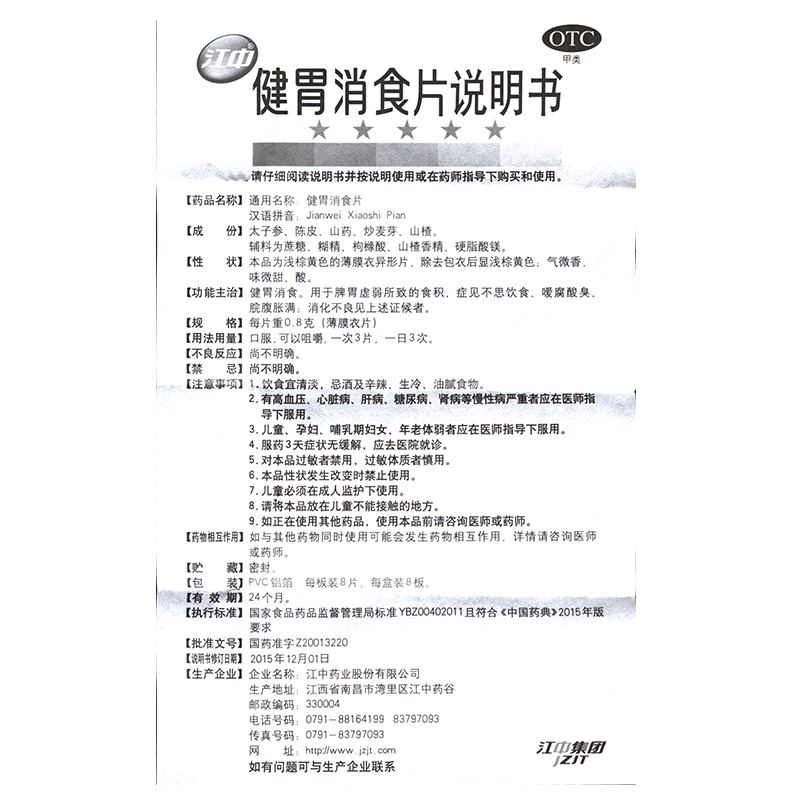 • 商品名称:江中 健胃消食片 0.8g*8片*8板/盒
