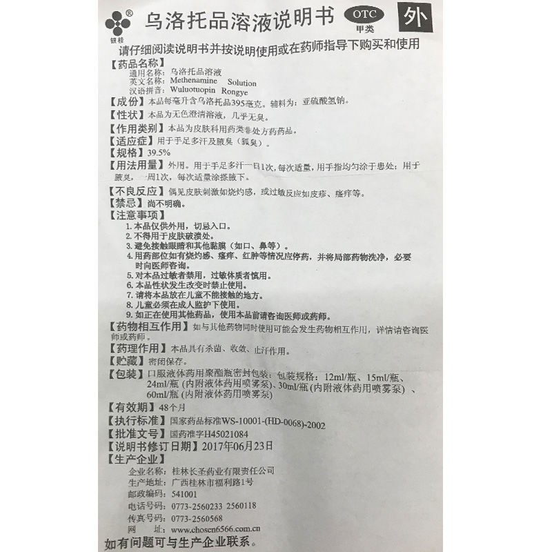 • 商品名称:银桂 乌洛托品溶液 60ml*1瓶/盒
