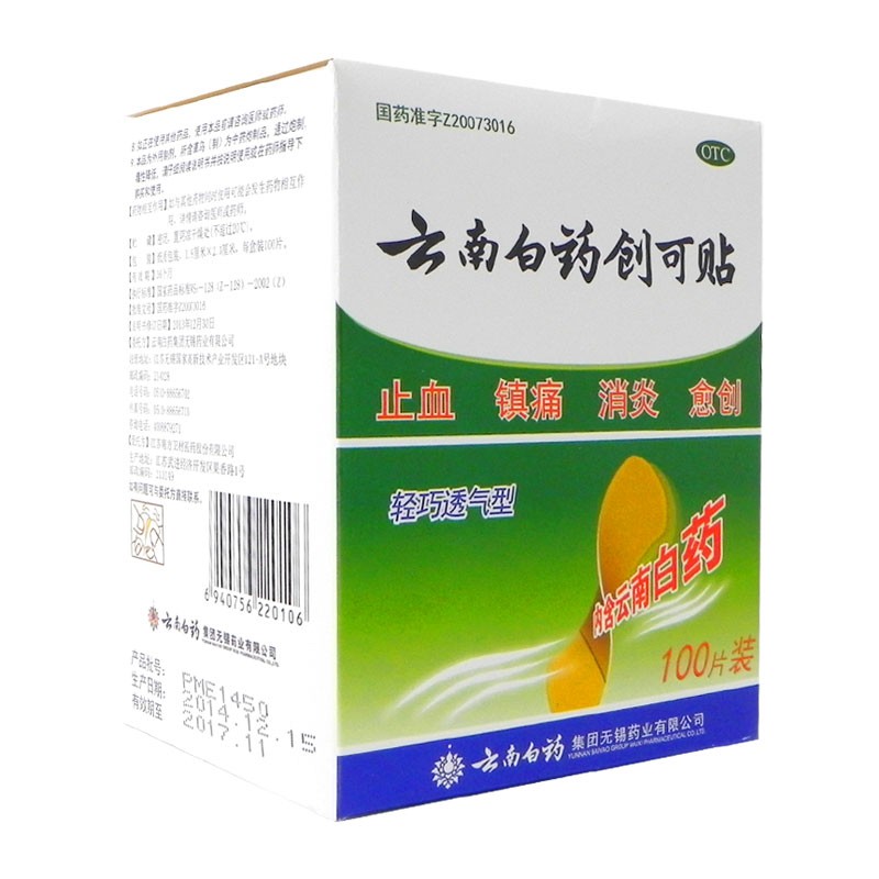 • 商品名称:云南白药创可贴 1.5cm*2.3cm*100片/盒