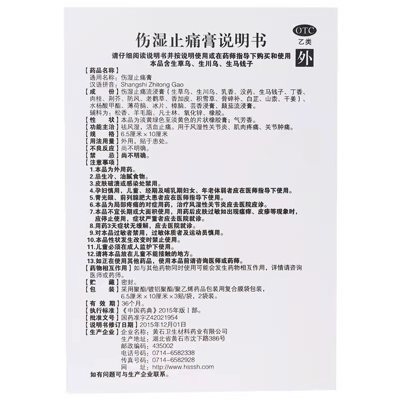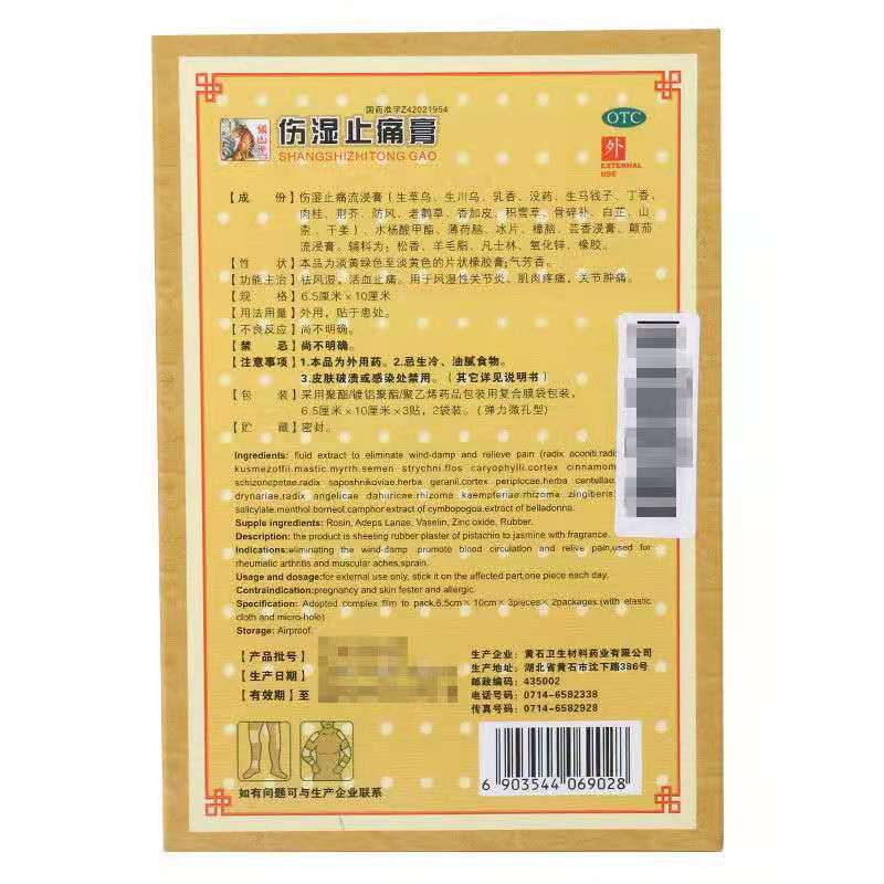 • 商品名称:镇山虎 伤湿止痛膏 6.5cmx10cmx3贴x2袋/盒