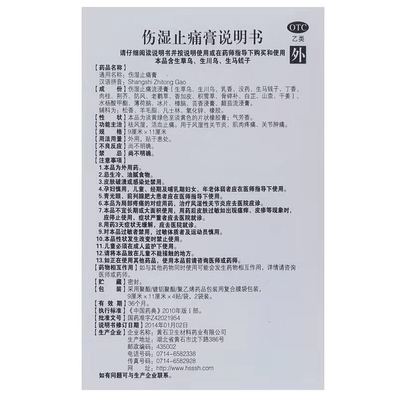 • 通用名称:伤湿止痛膏