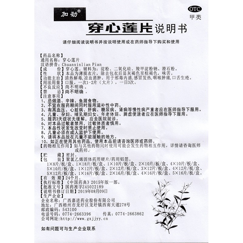 • 商品名称:加劲 穿心莲片 12片*4板/盒