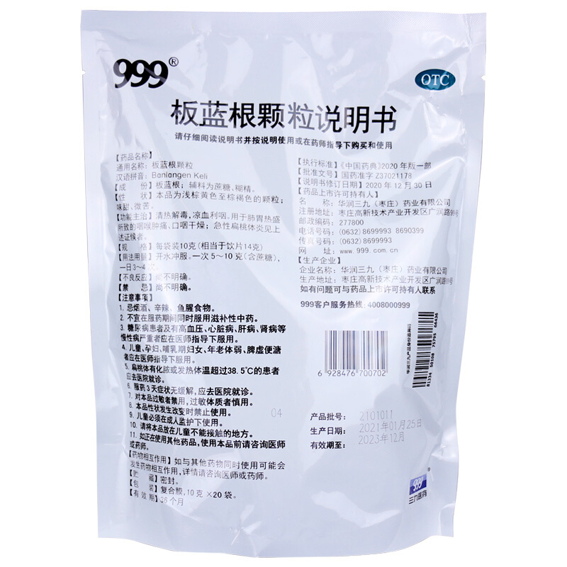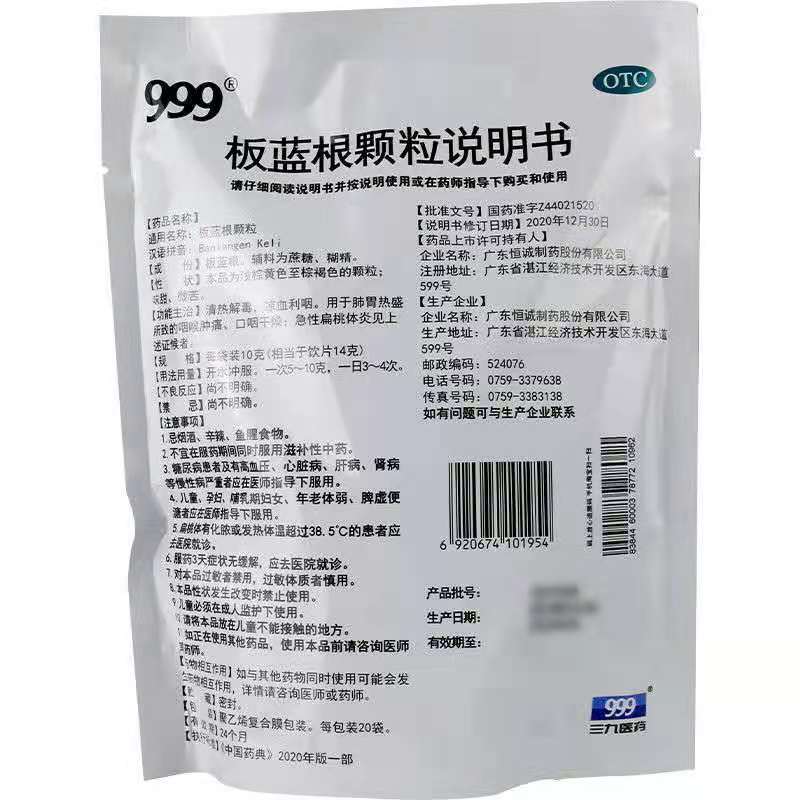 • 商品名称:三九999板蓝根颗粒10g*20袋
