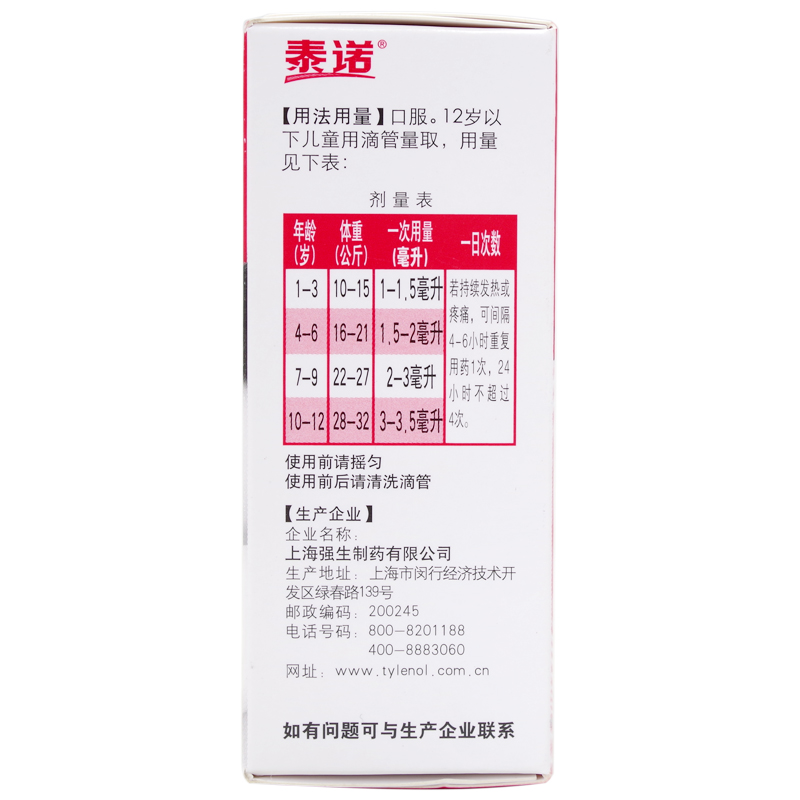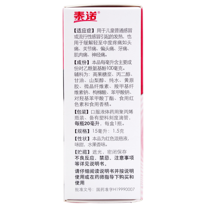 • 商品名称:泰诺林 对乙酰氨基酚混悬滴剂 20ml:2g/瓶