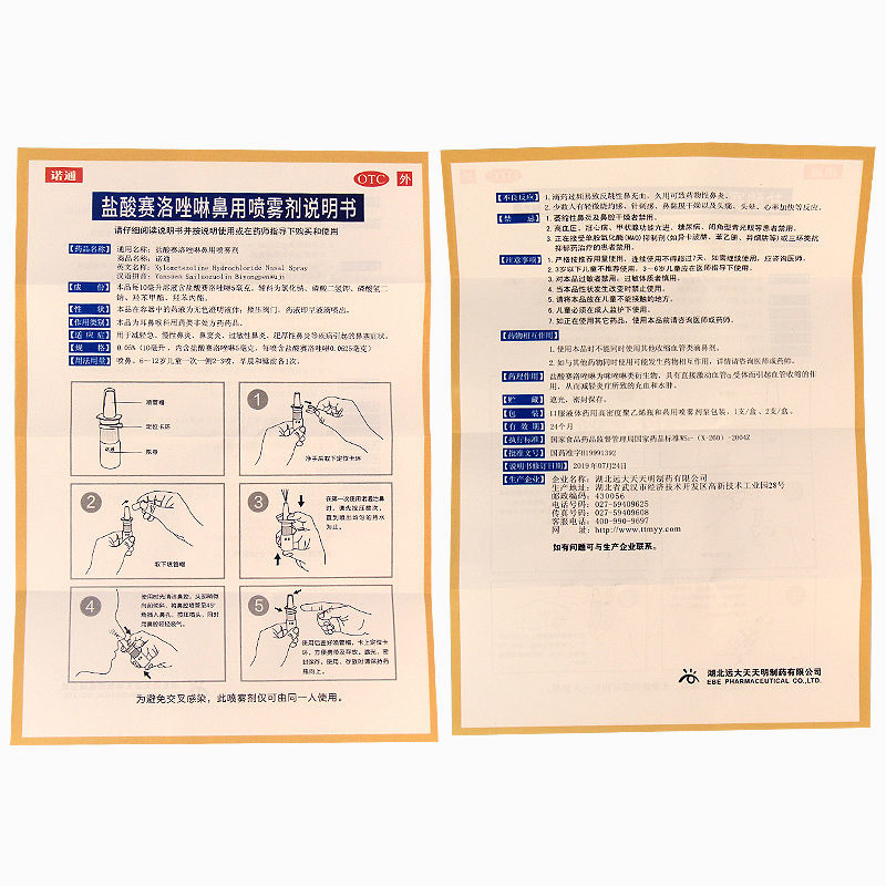 • 商品名称:诺通 盐酸赛洛唑啉鼻用喷雾剂 10ml:5mg/瓶